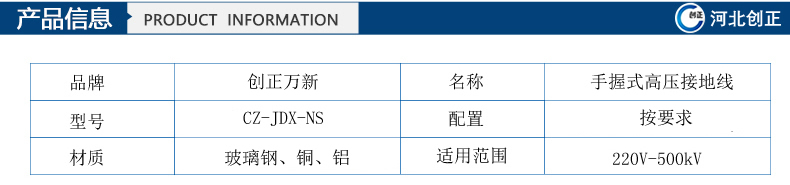 (1)型號:CZ-JDX-NS-6kV手握式高壓接地線;