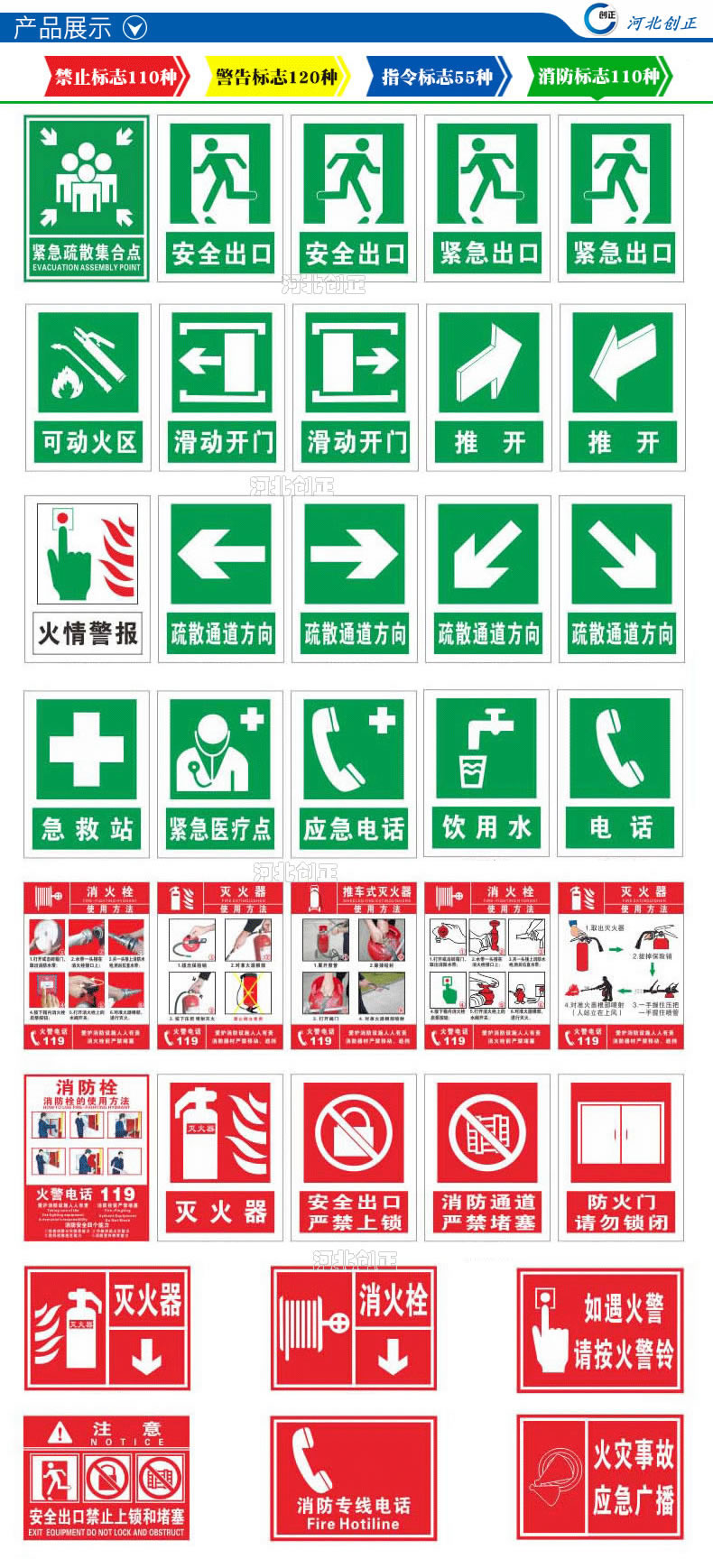 2、產(chǎn)品內(nèi)容:禁止、指令、提示、線路相位、消防、通信、交通等。