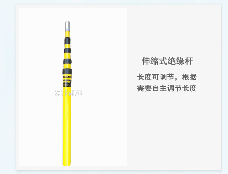 4、產(chǎn)品特點:重量輕,易攜帶,使用方便,可根據(jù)使用空間伸縮定位長度,克服了接扣式拉閘桿因長度固定而使用不便的缺點。