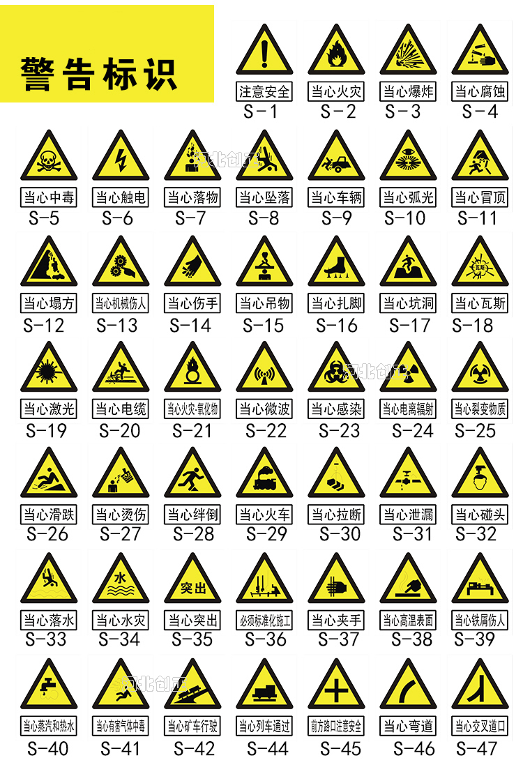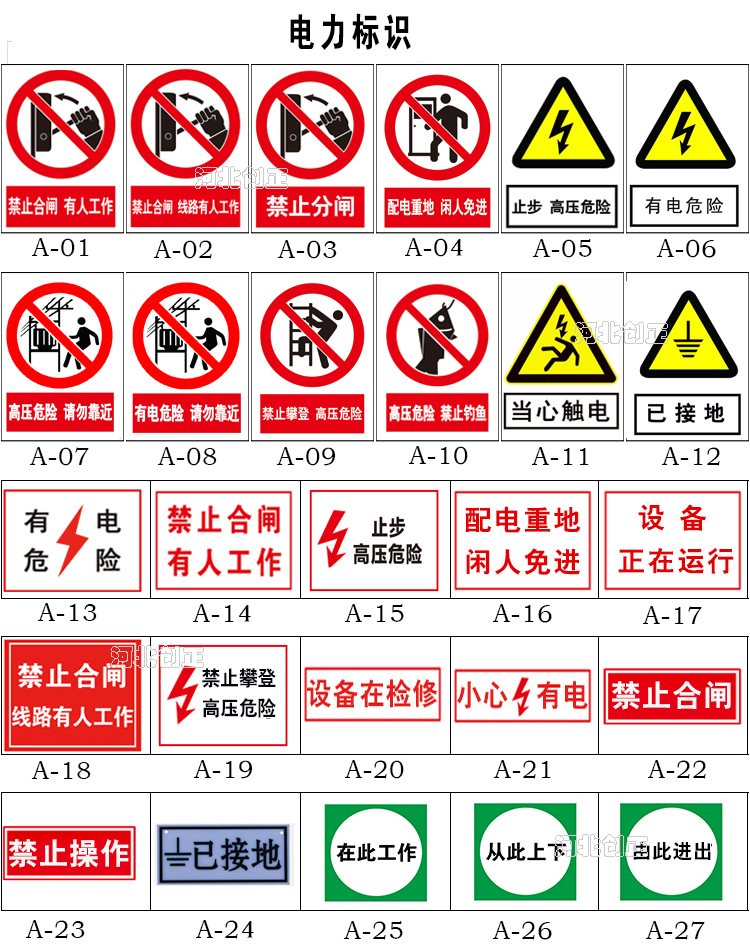 2、產(chǎn)品內(nèi)容:禁止、指令、提示、線路相位、消防、通信、交通等。