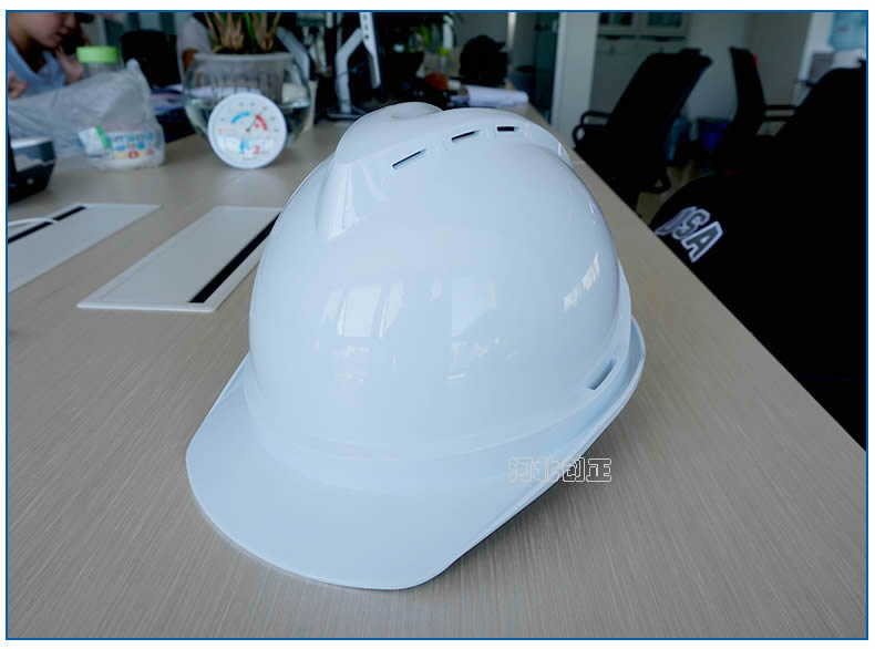 安全帽由帽殼、帽襯、下頰帶和后箍組成。帽殼呈半球形,光滑并有彈性,沖擊物的沖擊和穿刺動能主要由帽殼承受。帽殼和帽襯之間留有空間,可緩沖、分散沖擊力。耐沖擊性、耐穿刺性、側(cè)向鋼性、電絕緣性、阻燃性等是安全帽的基本性能。