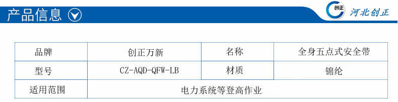 產(chǎn)品名稱:藍色全身五點式大鉤安全帶