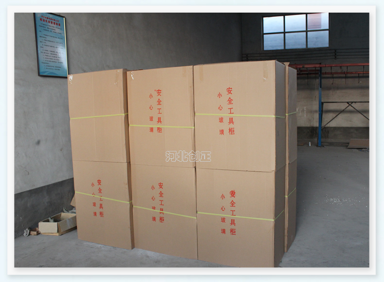 1、柜體是冷軋鋼板卷壓成型,厚度有1.0mm,1.2mm,1.5mm供選擇。柜體表面采用靜電防腐噴塑工藝,顏色為駝灰色,柜門裝有通體透明鋼化玻璃,透過玻璃可以看到分類有序的工器具。